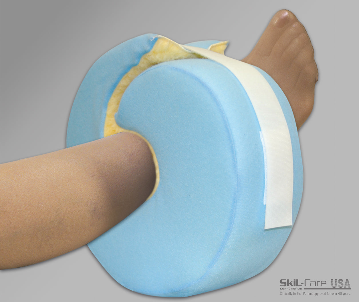 Eliminate heel pressure with a foot elevator that is covered with perspiration absorbing cozy cloth.